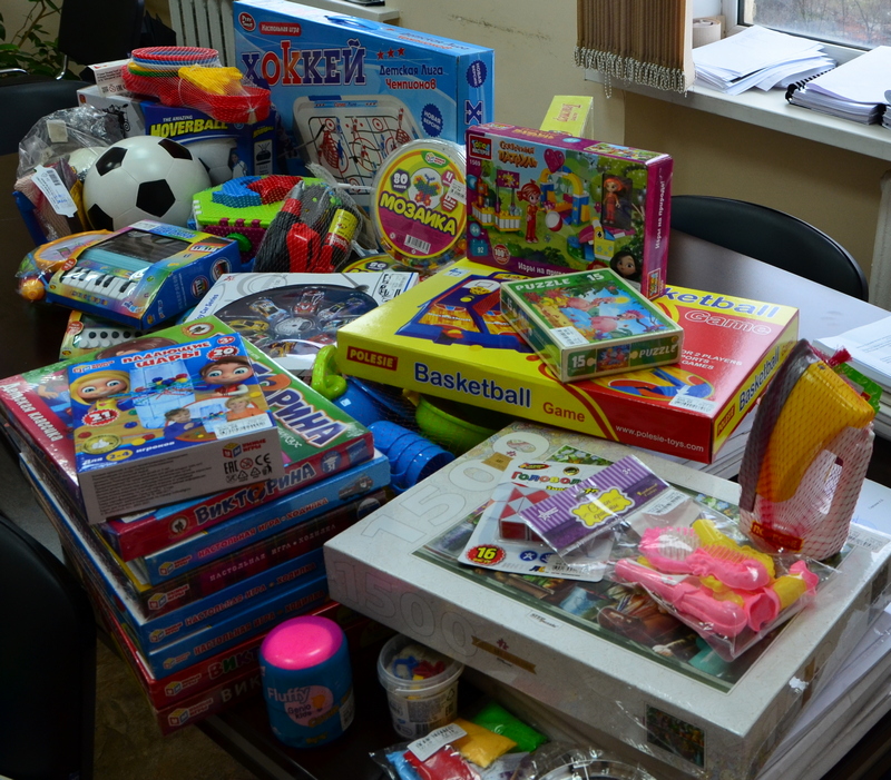 В качестве новогодних подарков детям были приобретены наборы для творчества, развивающие игрушки, мячи, пазлы, конструкторы, машинки, тематические игровые наборы («Поваренок», «Доктор», «Парикмахер») и многое - многое другое. Все подарки выбирались и закупались с любовью, вниманием и заботой об особых потребностях маленьких друзей нашего Предприятия.