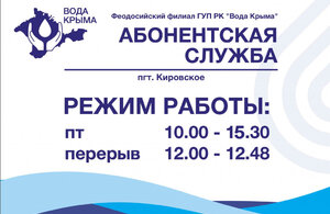 Контактные телефоны для справок и передачи показаний приборов учета воды: +7 978 703-96-29 (г. Старый Крым); +7 978 703-95-54 (пгт. Кировское)