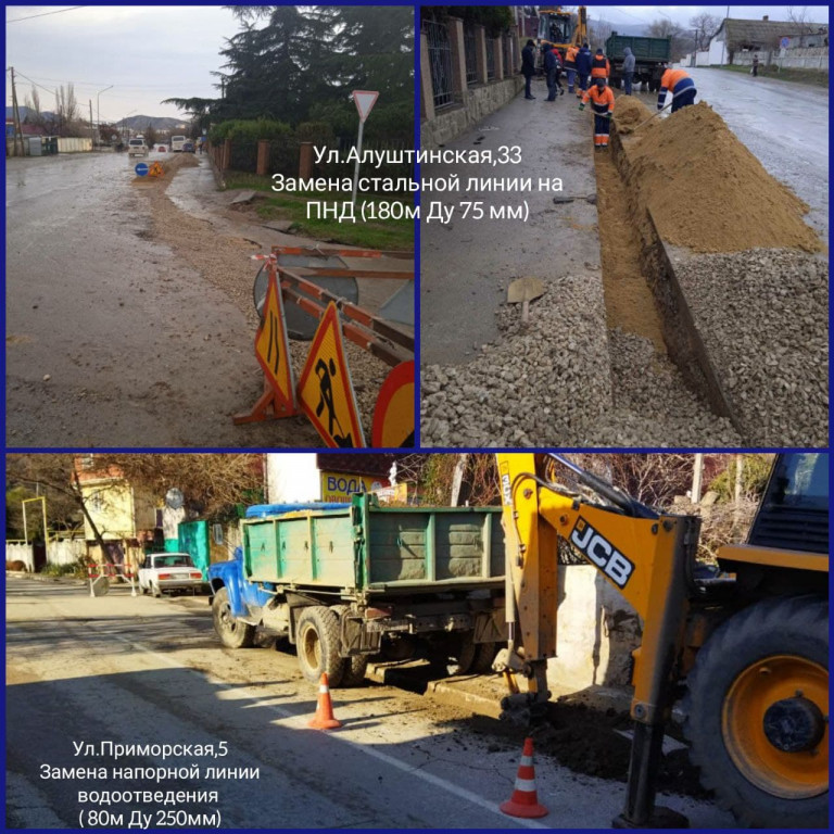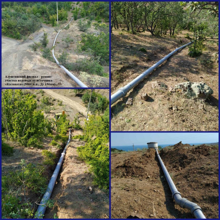 - замена участка водовода от источника водоснабжения родник "Калавата" до с. Генеральское (перекладка 4850 м трубопровода Ду 150 мм) –Алуштинский филиал