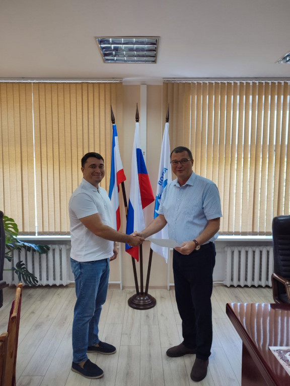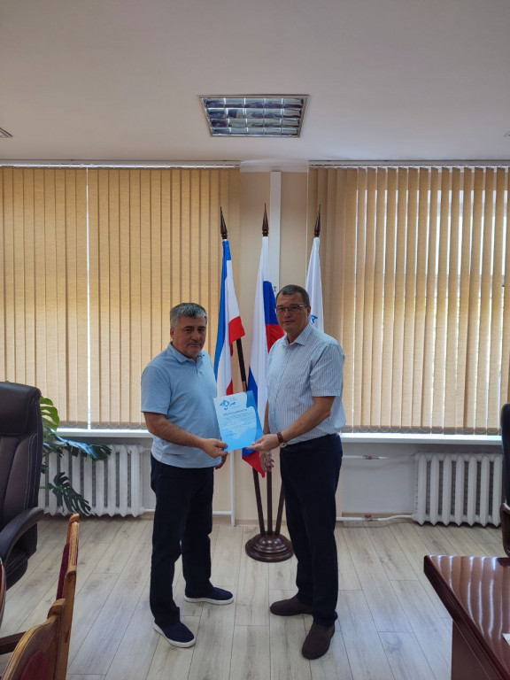 В преддверии профессионального праздника – дня строителя, генеральный директор ГУП РК «Вода Крыма» Андрей Кузнецов вручил благодарности руководителям подрядных организаций, которые выполняют строительно-монтажные работы на сетях, обслуживаемых Предприятием.