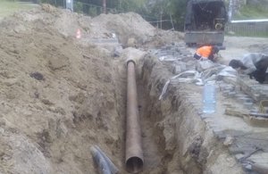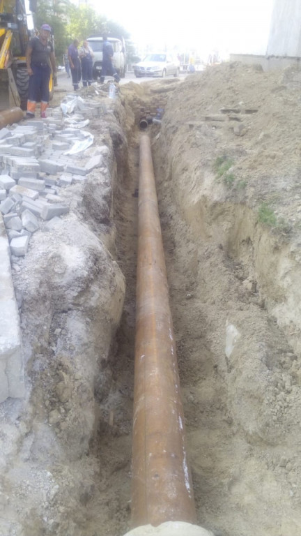 По согласованию с администрацией перед укладкой асфальтобетонного покрытия специалистами Ленинского филиала ГУП РК «Вода Крыма» заменены изношенные участки водоводов. Так, у дома № 43 заменили 120 м.п. Ду 50 мм стальной трубы на пластиковую. У дома № 48В произведена замена 36 м.п. стальной трубы Ду 219 мм.