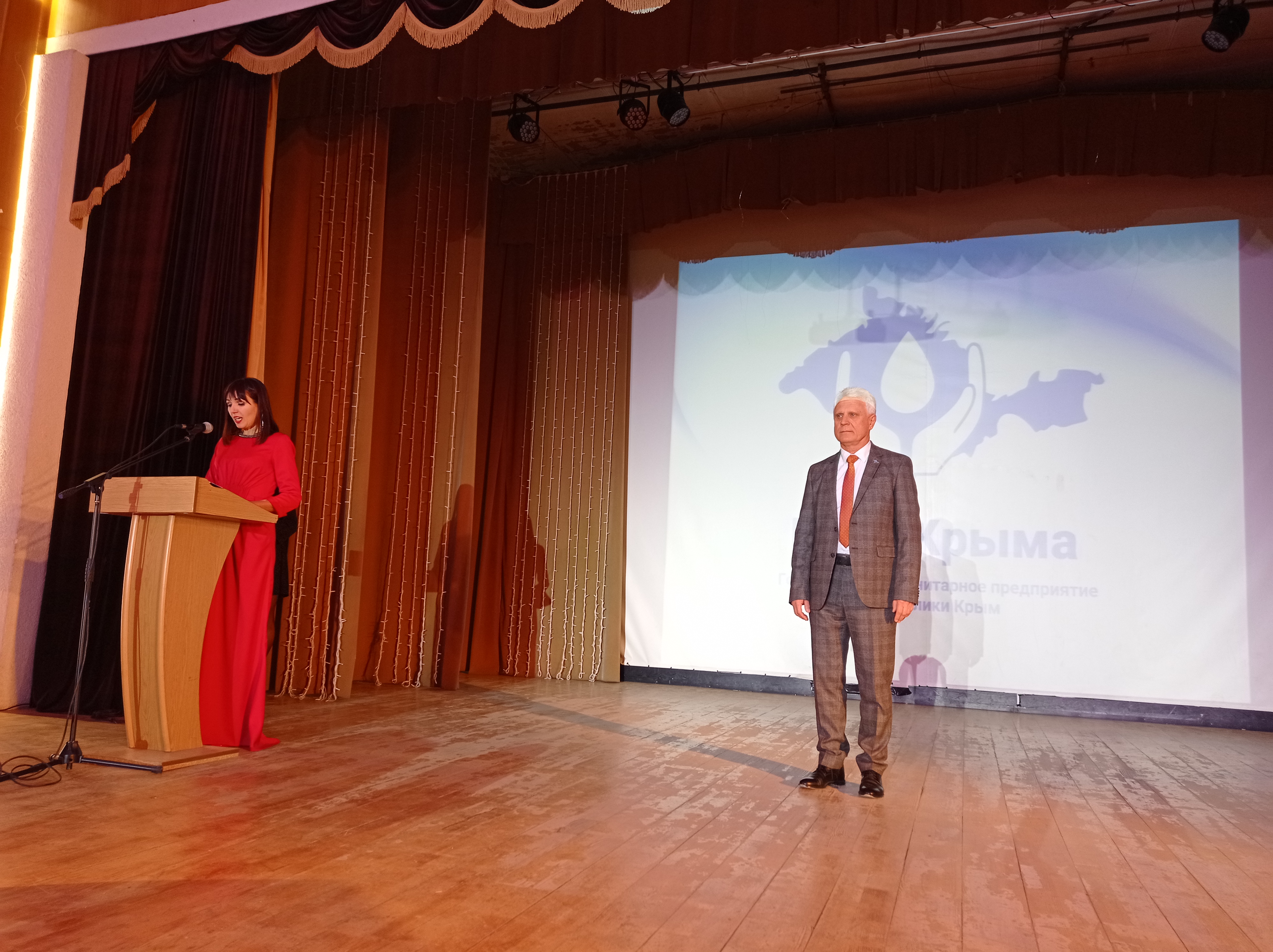 Официальную часть собрания открыла заместитель министра жилищно-коммунального хозяйства Республики Крым Оксана Механичева с поздравлениями работников отрасли и вручила сотрудникам ГУП РК «Вода Крыма» почетные грамоты Министерства жилищно-коммунального хозяйства.