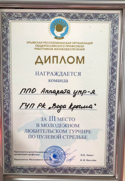 19 ноября Крымская республиканская организация Общероссийского профсоюза работников жизнеобеспечения провела Молодежный любительский Турнир по пулевой стрельбе из пневматической винтовки среди членов профсоюза - стрелков любителей.