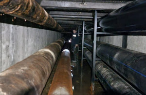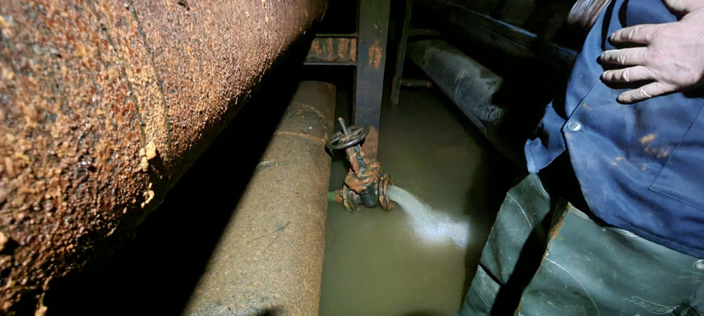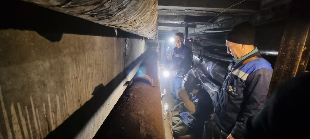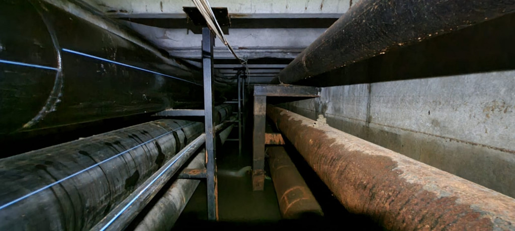 Осложнения работ заключались в том, что глубина залегания трубы около 4 м в тоннеле, заполненным водой. Длина тоннеля более 1500 м, шириной 2.5 м.