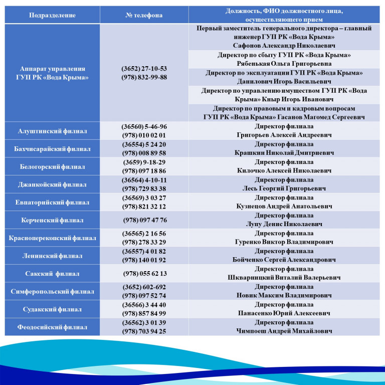 Руководством ГУП РК «Вода Крыма» будут рассмотрены вопросы, входящие в компетенцию предприятия.