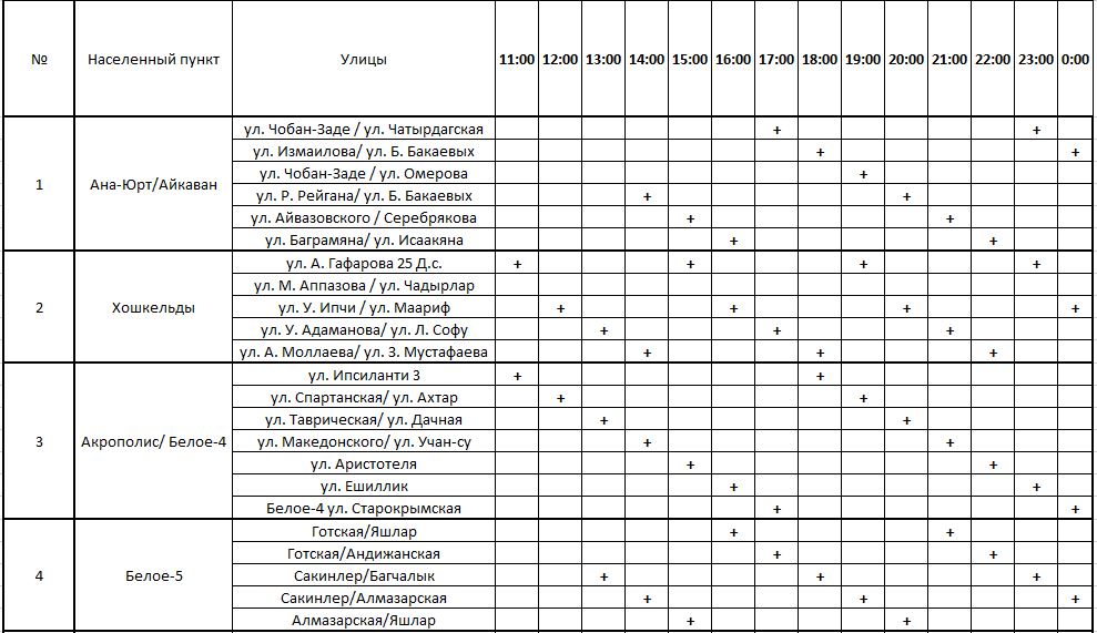 В связи утечкой воды на сетях холодного водоснабжения по адресу: г. Симферополь, мкр. Белое-1 07.02.2021 будет ограничено водоснабжение (отклонение от графика) по адресам: Белое, Айкаван, Ана-Юрт, Хошкельды, Каменка, а также прилегающие улицы и переулки. В данный момент проводятся аварийно-восстановительные работы, по окончанию водоснабжение будет восстановлено. Осуществляется подвоз питьевой воды специализированным автотранспортом согласно графику.