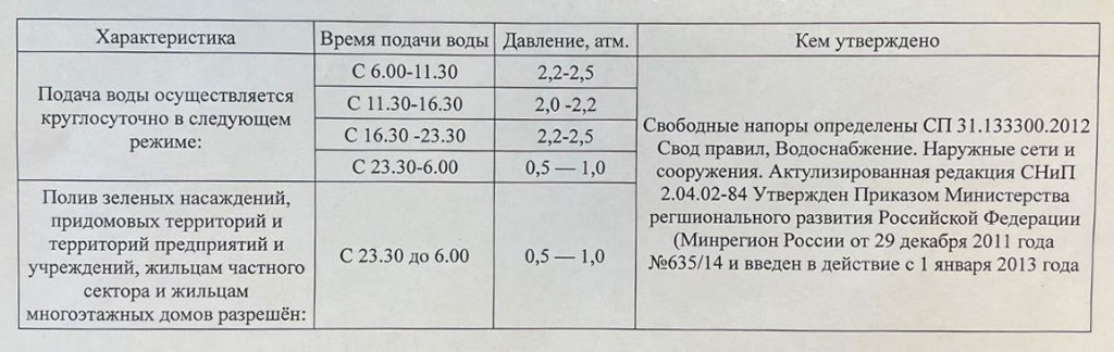 с 04.07.2024 вода будет подаваться согласно утвержденному графику.