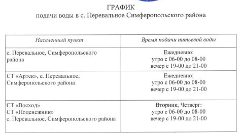 Подача воды будет осуществляться по графику: